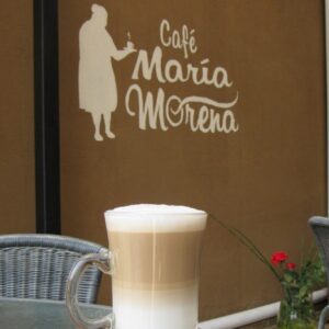 El logo diseñado para el café «María Morena» es una representación visual que honra la figura de la abuela de la dueña, quien da nombre al negocio. La silueta negra de la abuela, sosteniendo una taza de café humeante, se encuentra a la izquierda del nombre del café, «María Morena», escrito en una tipografía cursiva y elegante. La letra «o» en «Morena» se convierte en una taza de café, de la cual emerge un rastro de vapor que se integra de manera fluida con las letras, añadiendo un toque cálido y acogedor al diseño. El contraste entre la silueta negra y el fondo suave resalta la figura de la abuela y aporta una sensación de nostalgia y tradición, que se ve complementada por la elección del color marrón en el vapor y la taza, evocando los tonos del café recién hecho. Este logo captura no solo la esencia del café, sino también el cariño y el respeto por las raíces familiares.
